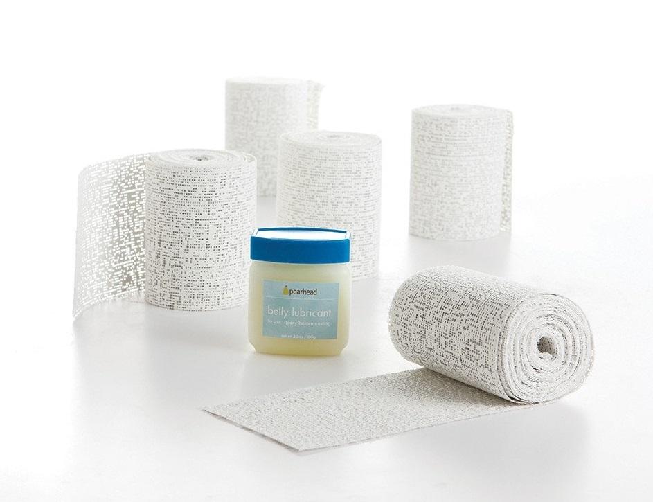 *Pearhead: Belly Casting Kit*Cherish your special pregnancy journey with Pearhead's belly casting kit. This non-toxic, 100% baby safe kit includes everything you need to make a mold of your adorable baby bump. Each kit includes five rolls of plaster tape, belly casting lubricant, a plastic drop cloth, non-latex gloves, and sanding screen. The instructions included walk you through creating your bump step by step. Use the drop cloth to ensure you do not make a mess. You can lay it down on the floor or area you will be making your mold. Next put the non-latex gloves on to keep your hands clean, then apply the belly casting lubricant on your belly so the plaster doesn’t stick to it.You can then start out by cutting strips from the plaster roll and dipping the strips in warm water, one at a time. Place each strip onto the casting area. Overlap the strips and apply 3–4 layers to make the mold thick. Wait 5–10 minutes before removing the mold and let dry for a dry. Once dry use the sanding screen to smooth your cast. Your mold will be finished before you know it and will be ready to decorate or display! You can even have some fun with your mold and have friends sign the finished product at your baby shower. Pearhead’s belly casting kit is the perfect gift for any expecting mom and a great way to remember your bump!*Features:** Cherish your special pregnancy journey with Pearhead's belly casting kit* Create a cast of your baby bump with easy to use kit* Decorate the cast with paint or have friends sign the finished product at a baby shower* Use easy 4-step instructions to create your mold* Non-toxic, 100% baby safe plaster*Kit Contents:** 5 rolls of plaster tape* Belly casting lubricant* Plastic drop cloth* Non-latex gloves* Sanding screen