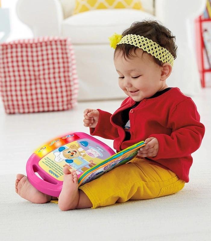It’s rhyme time! Nursery rhymes are music to little ones’ ears because the rhythm & repetition make them easy to remember. Turning the pages of this storybook introduces tots to favourites like “Pat-a-Cake” and “Row, Row, Row Your Boat” led by Sis. Or baby can press any of the 3 light-up buttons to discover letters, numbers, colours, fun surprises and more on each page. And when you gotta book, grab the top handle to keep baby entertained on the go-go-go.*Features:** Fisher-Price® Laugh & Learn™ Storybook Rhymes Book* Teaches: Letters, Numbers, Shapes & Colour, First Words AND MORE!.* Helps develop: Academics, Fine Motor Skills, Imagination & Creativity6 sing-along nursery rhymes: Itsy Bitsy Spider-Row, Row, Row Your Boat-One, Two, Buckle My Shoe-Animal Fair-Pat-a-Cake-Hickory Dickory Dock.* Features familiar favourite Laugh & Learn character.* 3 light-up buttons teach counting, first words, letters, colours, shapes and more.* Easy-to-turn pages help boost fine motor skills.* The top handle makes it easy to take on the go.* Available in assorted colours (each sold separately, subject to availability).* Batteries x 3 AAA*Suitable Ages: 6–36 months.*