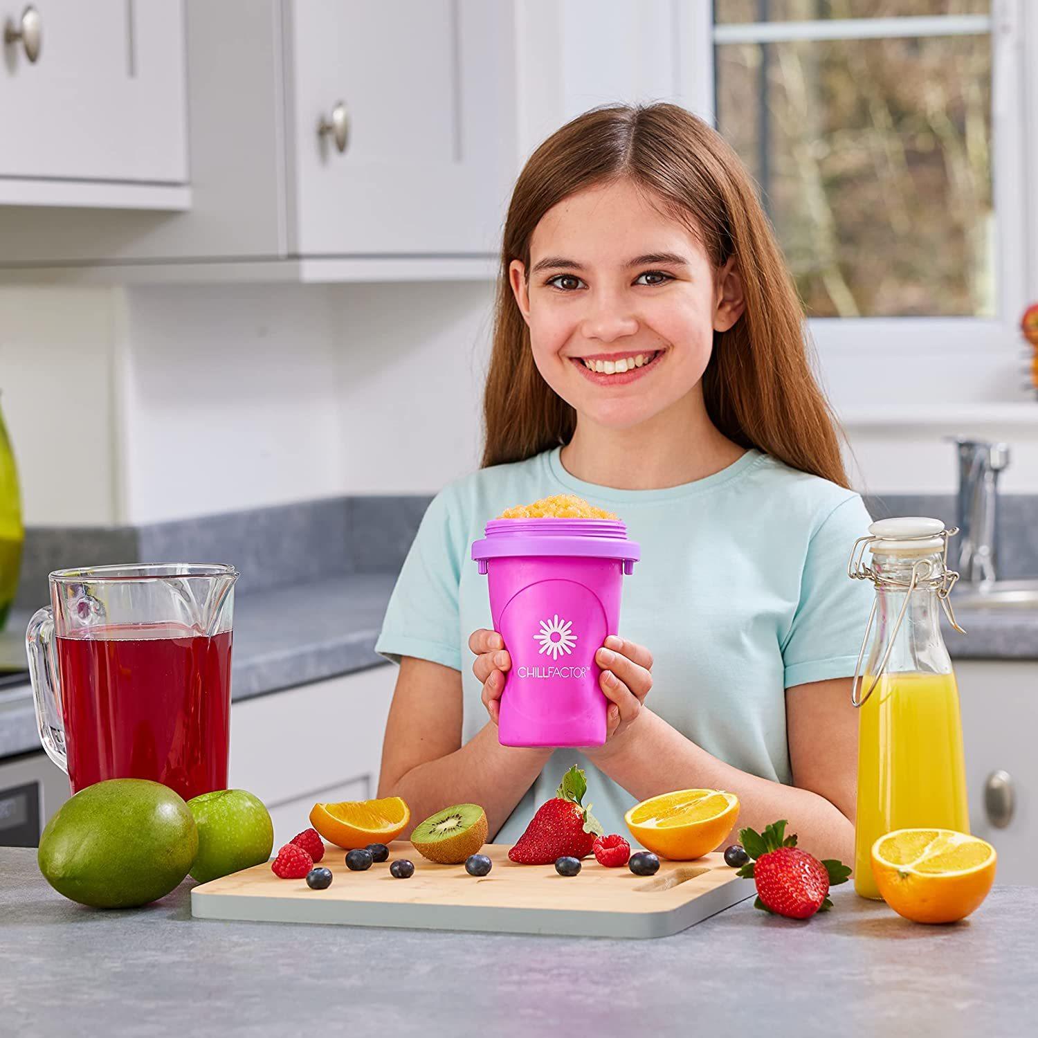 *Simple to use, No ice, no blenders, no mess!*The Chill Factor slushy maker is so easy to use – all you have to do is put it in the freezer, wait for it to freeze then add your preferred chilled drink and squeeze! Right before your eyes you will see slushy appear in seconds! Once you have made your slushy you can use the reusable spoon straw included to enjoy! The Chill Factor Slushy Maker is transportable so you can enjoy your slushy anywhere once made!*Features:** This super stylish slushy maker is presented in Fruitastic colours!* Allows you to make delicious slushies' in seconds No ice, no blenders, no mess.* Freeze, squeeze, enjoy Simply put your ChillFactor Maker in the freezer* Wait for it to freeze then add your preferred chilled drink and squeeze* Create slushies' from all your favourite chilled drinks* Simply wash in warm soapy water, refreeze and its ready for your next slushy_Please Note: Includes Cup & Spoon only_