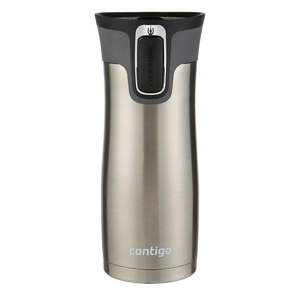 Hectic mornings are easier with the West Loop Stainless Travel Mug, because this mug features a one-touch AUTOSEAL® lid that automatically seals between sips to prevent spills. This Thermalock™ double-wall vacuum-insulated mug is engineered to keep drinks hot for up to 4 hours or cold for up to 20 hours, without a sweat. We mean that literally, because this vacuum-insulated mug keeps your drink at the optimal sipping temperature and eliminates condensation for dry hands. The AUTOSEAL lid creates an easy one-hand drinking experience and it fits most standard car cup holders, which makes it ideal for the commute! We passionately urge parents, teachers, commuters or anyone on-the-go that loves a hot drink, to grab this mug!*Benefits** AUTOSEAL® lid automatically seals between sips to eliminate spills and leaks* Thermalock™ double-wall vacuum-insulation keeps your drinks hot for up to 4 hours or cold for up to 20 hours* One-handed operation for convenient drinking during activities* Sleek design fits most standard car cup holders* Top-rack dishwasher safe, hand wash body* Volume: 470ml* Dimensions: 3.0" wide at the widest point of the lid x 10.4"H x 2.75" diameter at base_Contigo brand is now a leading innovator of Travel Mugs, Water Bottles and Kids Bottles. Our first innovation was our patented AUTOSEAL® technology which was designed to automatically seal between sips so you never have to worry about spilling another drop._