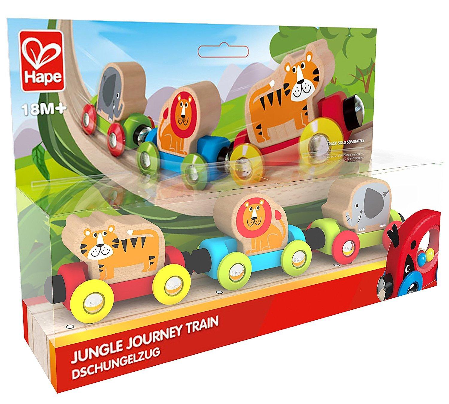 *Hape: Jungle Journey Train*Lions and tigers and elephants, oh my! Rumble through the jungle on a rail adventure with three wonderfully wild jungle buddies!*Features:** Encourages imaginative role play* Perfect for use individually or with friends* Non-toxic finishes and child safe materials*Suitable for ages 18m & up*_Product images not final and may be subject to change_
