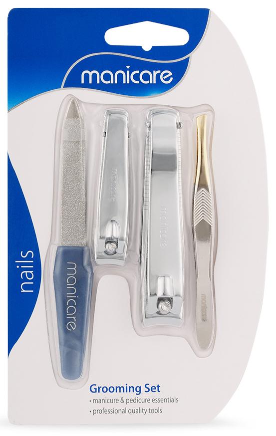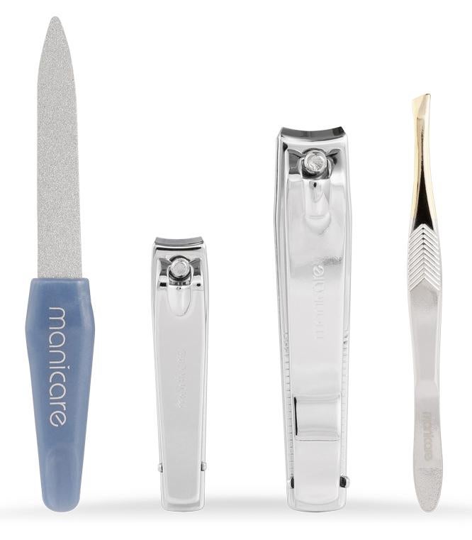 This grooming set includes: Eyebrow Tweezer Finest quality stainless steel, 22k gold tipped tweezers with perfectly aligned tips to ensure accurate & easy hair removal. Toenail Clipper Precision ground cutting edges for clipping tough toenails. Includes a fold out file for smoothing & shaping jagged edges. Nail Clipper Chrome plated steel nail clipper with curved cutting edges. Includes a fold out file. Sapphire Nail File Stainless steel, dual coated surface nail file to beautifully smooth & shape nails after trimming. Use the coarse side to shape nails & the fine side to smooth & finish the nail edge.*How to Use:** Eyebrow Tweezer: Grip tweezers in the centre of the arms & tweezer hairs in the direction of hair growth.* Toenail Clipper: Cut toenails straight across, following the shape of the toe.* Use fold out file to smooth and shape jagged edges.* Do not cut into the corners as this may cause ingrown toenails.* Nail Clipper: Clip or trim nails to the desired length before shaping with the fold out file to prevent chipping and splitting.