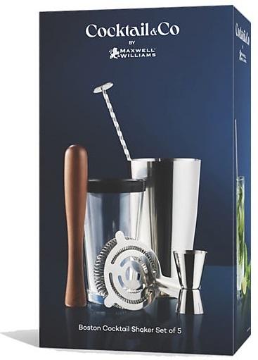 *_Maxwell & Williams: Cocktail & Co Boston Cocktail Shaker Set_*Mix and pour like a pro with this five-piece Boston cocktail shaker set from the Cocktail & Co collection by Maxwell & Williams. This versatile set has everything you need to pour the perfect cocktail, with a stylish Boston cocktail shaker and a selection of versatile bar tools.Perfect for both shaken and stirred cocktails, it makes the perfect gift for any aspiring mixologist.*Features:** Classic design with a sleek profile and stylish accessories* Set includes 400ml Boston cocktail shaker, cocktail spoon, wooden muddler, jigger and Hawthorne strainer* Quality glass and stainless steel with wooden muddler* Gift boxed* Hand wash recommended*Specifications:** *Brand:* Maxwell & Williams* *Range:* Cocktail & Co* *Colour:* Stainless Steel* *Capacity:* 400ml