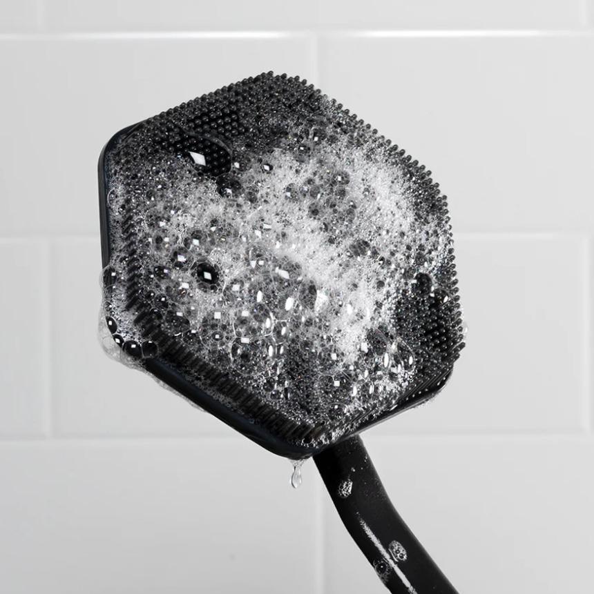 *_Tooletries: Back Scrubber & Hook – Charcoal_**The ultimate back-up*Your back is like a remote Amazonian village. It’s hard to reach. That’s why we created our Back Scrubber. It has an ergonomic, extra-length handle that’s designed to give you long-awaited, deep cleansing access to all those forgotten nooks and crannies. What’s more, its bespoke storage hook keeps it high, dry, and hygienic. So go on, give your back the scrub it’s never had.A modern alternative to the fluffy loofah. 100% silicone construction, long lasting, hygienic with ergonomic handle*Benefits** Unclogs pores, cleans deep* Makes skin feel soft and rejuvenated* Boosts circulation & exfoliates your skinHow to use:Add your favourite body wash directly to the scrubber and massage onto wet skin.* Dimensions: 40 × 11.5 × 4cm.* Includes: 1× Back Scrubber, 1× Arnold Hook.