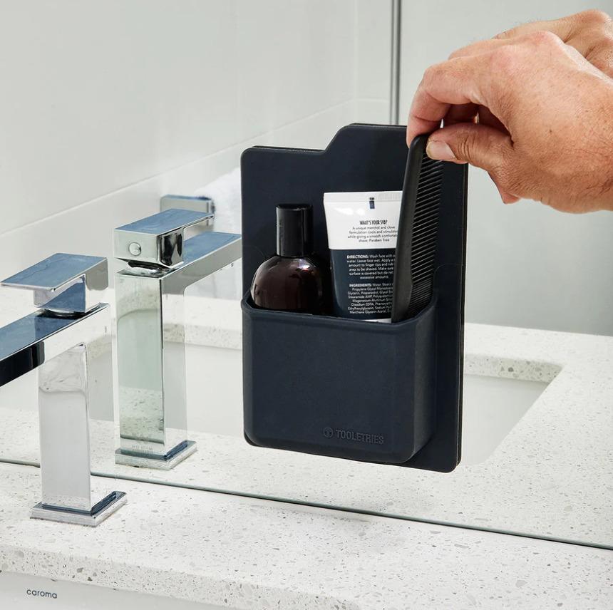 *_Tooletries: The James – Toiletry Organiser_**The ultimate bathroom organiser*The James has room. Lots of it. In fact, it has enough space for your razor, face wash, comb, toothbrush, toothpaste, and then some. Plus, it comes with a convenient divider to keep your favourite items separate from the rest. Indeed, it’s a truly life-changing piece of bathroom storage. One that’ll keep your essentials within reach, and your routine within a convenient amount of time. After all, the day waits for nobody.Dimensions: 21.5 × 14 × 5cmHolding Strength: 2.2kg