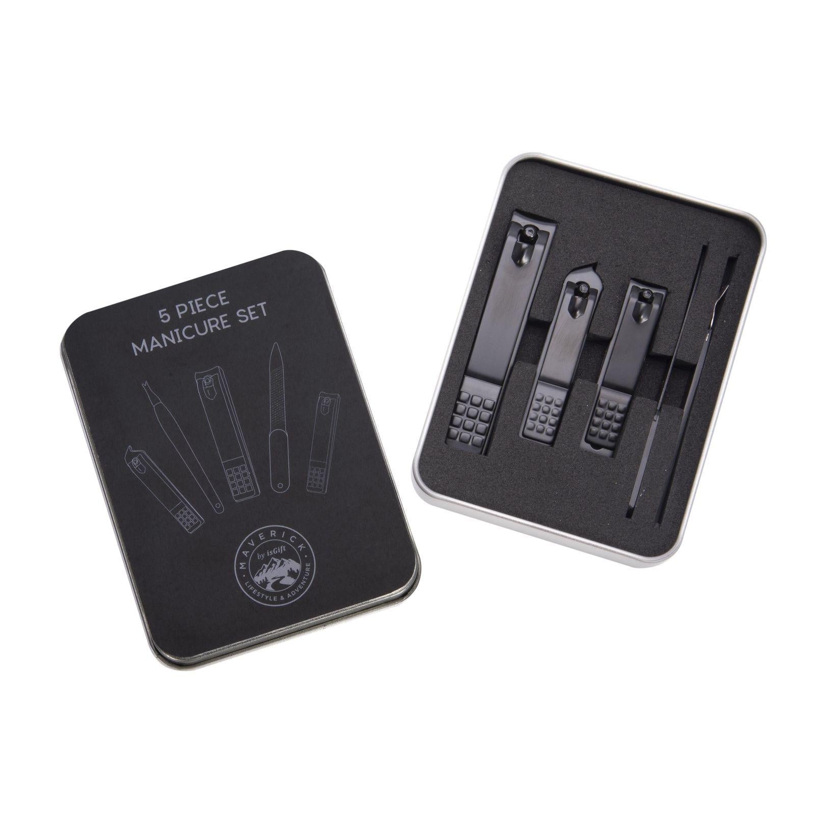 *Maverick Ultimate Manicure (5 Piece Set)*Keep your nails looking their best with the Maverick 5 Piece Manicure Set. This premium-quality stainless steel set is a must-have for anyone who wants to maintain well-groomed nails. It comes complete with all the essentials you need for nail care, including toenail clippers, nail clippers, angled nail clippers, a nail file, & a cuticle trimmer.The set is conveniently packaged in a handy tin, making it easy to carry with you wherever you go. Whether you're at home or on the go, this manicure set ensures you always have the tools you need to keep your nails in perfect shape.*5 Piece Manicure Set includes:** 1 x Toenail clippers (Dimensions: L8 × 1.5W x H1.8cm)* 1 x Nail clippers (Dimensions: L5.7 x W1.1 x H1.5cm)* 1 x Angled Nail clippers (Dimensions: L6 x W1.2 x H1.8cm)* 1 x Nail File (Dimensions: L9 x W1.1 x H0.2cm)* 1 x Cuticle Trimmer (Dimensions: L9 x W0.8 x H0.2cm)*Features:** Premium quality stainless steel manicure set* Presented in a handy stylish tin (Dimensions: L11.8 x W8.7 x H2cm)* High-quality tools for precise & comfortable nail care* Ergonomically designed for easy handling & control* Ideal for both personal use & as a thoughtful gift* Helps maintain well-groomed and neat nails* Suitable for use at home or while traveling