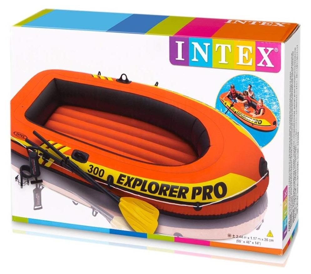 *Intex Explorer Pro Inflatable Boat (96" x 46")*Get ready for family fun with the *Intex Explorer Pro Inflatable Boat*, the perfect starter boat for your adventures on the water. Whether you're cruising around the pool or enjoying a peaceful day out on the lake, this compact inflatable boat is designed for up to *three people*, making it ideal for fishing, relaxing, or simply cruising with your loved ones.Crafted for comfort and durability, the *Explorer Pro*features an inflatable floor that provides both comfort and rigidity for smooth sailing. The boat is equipped with *2 air chambers* and *double valves*, ensuring safety and easy inflation. Measuring *244 × 117 × 36 cm* when inflated, it offers the ideal size for small groups.Convenient features like *welded-on oar locks* and a *grab rope on the bow* make it easy to handle and enjoy. The *Intex Explorer Pro* is built to last and includes a *repair patch* for quick fixes, ensuring you're always ready for your next adventure.*Key Features:** *Inflatable floor* for added comfort and stability* *2 air chambers* with double valves for increased safety* *Welded-on oar locks* for secure oar handling* *Grab rope on bow* for easy maneuverability* *Inflated size*: 244 × 117 × 36 cm, perfect for up to 3 people* *Includes repair patch* for peace of mind*Suitable for ages 10 & up*, the *Intex Explorer Pro Inflatable Boat* is a fantastic choice for families who want to explore the water together. Whether you're cruising, fishing, or enjoying a leisurely paddle, this boat offers fun and convenience in one.*Order your Intex Explorer Pro Inflatable Boat today and create unforgettable memories on the water!*