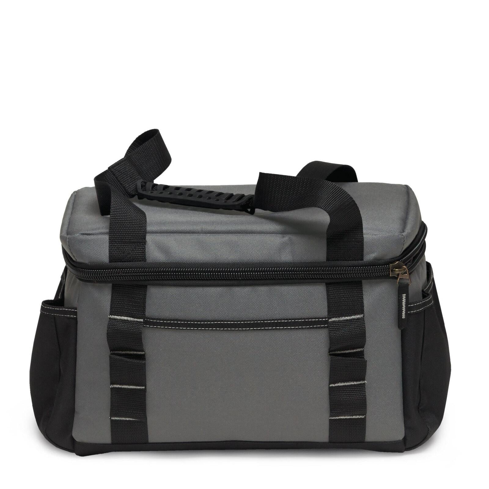 *_Ion Grit: HardHat Cooler Lunch Bag_*Keep yourself safe, and well fed with this cooler bag with a twist. Easily carry your hard hat, bottle, or anything else you might need on top while you're on the go.*Features:** Insulated zippered main cooler compartment with protective baseboard* Heat sealed leak-proof PEVA Lining* Top strap design that doubles for transporting a jacket, hard hat or a large capacity drink bottle* Moulded rubber grab handle* Antique brass zip sliders* Internal zippered mesh pocket, contains a 200ml Ice Brick / Slicker Pad* Front slip pocket* Dual end accessory slip pockets with Velcro tab closures* Daisy chain loops for attaching accessories via carabiner clip* Rubber feet for added protection* 33cm W x 23cm H x 22cm D*Hard hat and bottle are not included*