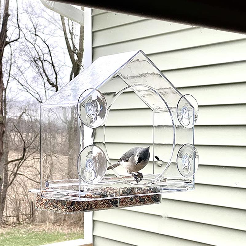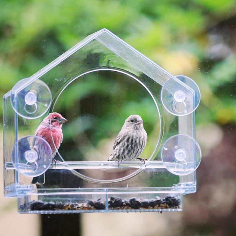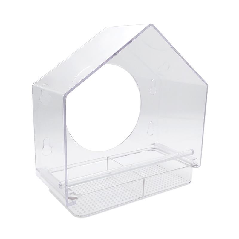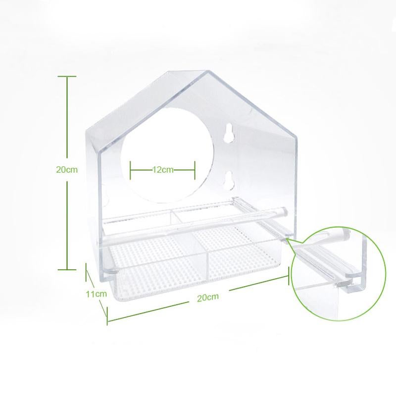 *Hanging Acrylic Bird Feeder*This bird feeder is medium in size and made of clear acrylic material to give you a clearer view of the birds and to be sure to attract all kinds of wild birds.*Features:** The feeder is equipped with a super suction cup for easy and quick installation.* Attach suction cups to any window that doesn't have a screen.* You don't have to remove the entire bird feeder to fill it.* Lift trays make cleaning and refilling easier and won't slip.* Simply remove the tray to discard debris or old seeds, then rinse the tray with warm water and soap.* You don't have to worry about the seeds getting wet in the house on a rainy day.* We made drainage holes in the feed pan to keep the seeds dry.* Watch wild birds feeding up close, you can see them from the living room, kitchen and window.* Children love seeing wild birds on the breakfast table in the morning before school.*Specifics:** *Color:* Transparent* *Material:* Acrylic* *Size:* 20×10×20cm* *Weight:* 444 grams* *Package Contents:* 1× Bird Feeder, 4× Suction Cups