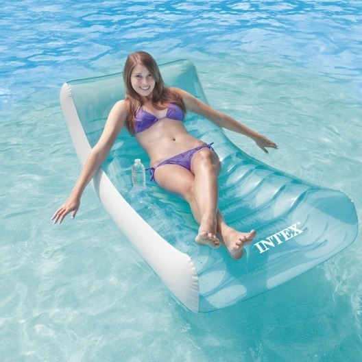 Enjoy your suntanning with Intex Rockin' Lounge. The unique contoured design provides ultimate comfort while the built-in cup holder keeps your refreshment nearby for convenience.* Constructed with two air chambers* Includes a built-in cup holder* Approximate deflated size: 74in x 39in* Age grade: adult