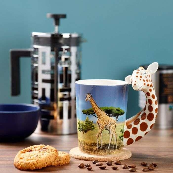 Giraffe Savannah Decal Ceramic Shaped Handle Novelty Mug (400ml)