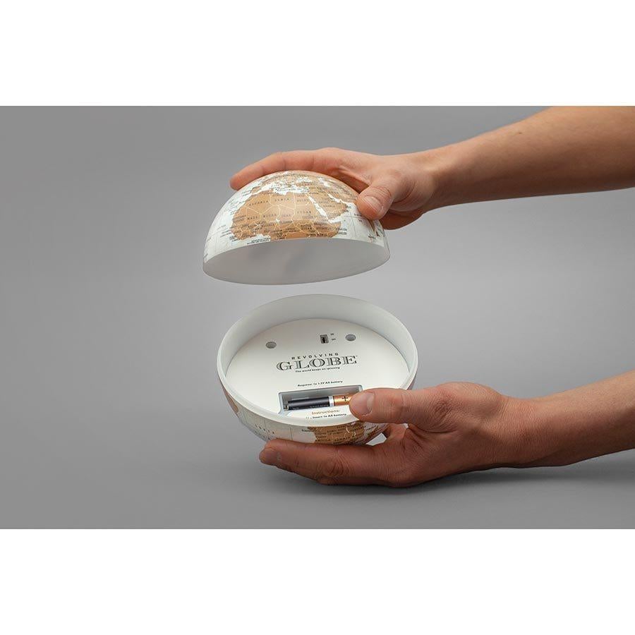 *Around the world in 14 seconds!*Take a trip around the world in just 14 seconds with Revolving Globe! This battery-operated earth rotates and makes a perfect accompaniment to any desk space. With it’s easy to put together two-part assembly, you’ll be discovering the world at your fingertips using the detailed map and high-gloss finish.*Features:** A detailed map of the world* 14-second full rotation* Spins for up to 30 days* Battery operated (AA battery not included)* High-gloss finish* Dimensions: 14.2 × 14.2cm