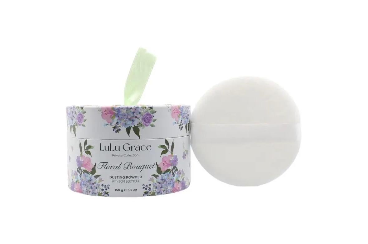 *_Lulu Grace: Floral Bouquet Dusting Powder – 150g_*Lulu Grace Private Collection Floral Bouquet Dusting Powder with Puffer is a luxurious powder that helps to keep you feeling and looking refreshed all day long. The floral bouquet scent will leave you feeling relaxed and uplifted.Lulu Grace range is a range of luxurious dusting and body powders made with Corn Starch. LuLu Grace is Talc FREE. The lux powders helps to keep you feeling and looking refreshed all day long. LuLu Grace body powders have a beautiful floral scent with delicate, romantic notes. The Lulu Grace Classic body powders are enchanting and have an elegant fragrance that are perfect for everyday wear. Lulu Grace Dusting Powders with a puffer are luxurious powders that help you keep feeling and looking refreshed all day long.*Contents:*1 × 150gm (Talc Free) Dusting Powder1 x Puffer
