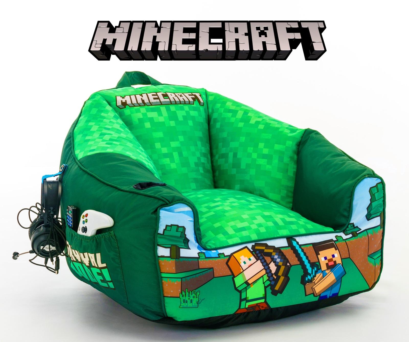 *\[Cover Only, Does Not Include Beans\]*Game, watch TV or hang out in comfort and style in a Minecraft Bean Bag Puff Chair. Hang out with your favourite adventurers Steve and Alex and handy features such as a headphone holder strap and storage pocket on the side. The grab handle on the top allows for easily moving this wherever you choose to game!Features:* Officially licensed product* Headphone storage strap* Large storage pocket* Grab handle at top for easy manoeuvring* Easy to clean polyester fabric* Filled to a size of 63W x 90H x 90L* Child safe zip fastener* Requires approx. 270L of bean bag filling, not included.*Note: this is a cover only and filling is not included. For the best results, use bean bag beans and NOT shredded memory foam.*Please note: Accessories are not included.Children can suffocate if bean bag filling is swallowed or inhaled. Do not let children climb inside this bean bag. A bean bag is not a safe sleeping surface for an infant under 12 months of age.
