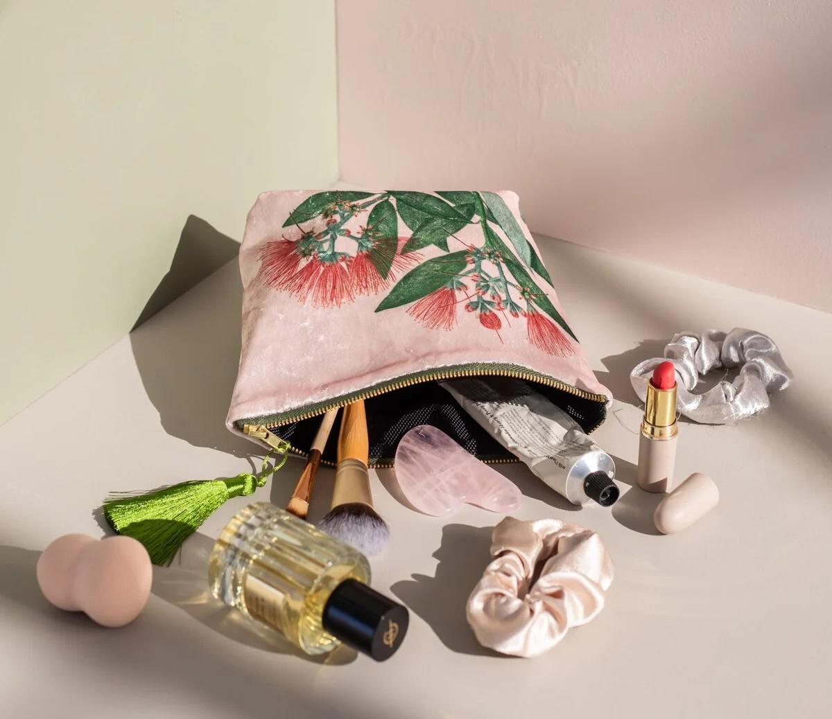 100% NZ: Vintage Botanical Pohutukawa Velvet Cosmetic Bag