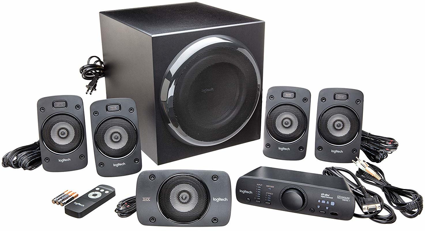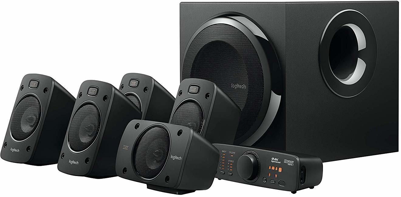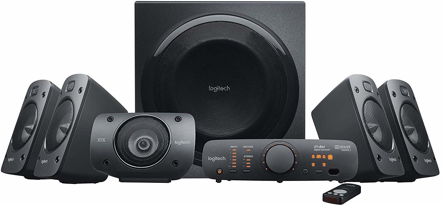 *THX, Dolby Digital, and DTS certified surround sound*Fully immerse into a premium, theater-quality audio experience in the comfort of your home. This 5.1 speaker system comes with a 1000 Watts Peak/500 Watts RMS power for a rich THX Certified surround sound.* *Certified Sound for Theater-Like Experience:* Fully immerse into a premium, theater-quality audio experience in the comfort of your home. This 5.1 speaker system comes with a 1000 Watts Peak/500 Watts RMS power for a rich THX Certified surround sound. With the ability to decode Dolby Digital and DTS encoded soundtracks, Z906 takes your movie and music experience to a whole new level.* *True Surround Sound:* Logitech Z906 delivers authentic surround sound straight out of the box. Tuned to the highest standards, this THX-certified 5.1 speaker system is engineered to decode Dolby Digital and DTS encoded soundtracks providing you with a premium audio experience.* *1000 Watts of Powerful Audio:* With the strongest wattage among Logitech 5.1 speakers, Z906 provides rich audio and thunderous bass that let you truly hear and feel every detail. Whether it’s your movie, your music, or your game—fully immerse into a world of sound.* *Versatile Setup:* Set up your speaker the way you want. Connect Z906 to as many as six compatible devices via various inputs—3.5 mm, RCA, six-channel direct, digital coaxial, or optical. Seamlessly switch between the input sources through the control console or remote control.* *Remote Control for Your Sound:* Your experience starts from your couch. Easily access all controls—power, volume, sound channels, and more—from one integrated remote control. Enjoy the flexibility by separately adjusting the volume levels of each satellite speaker and subwoofer. Plus, you can customize your listening experience by selecting either 2.1, 4.1, or 3D surround sound.*Technical Specifications** *Dimensions:* * *Satellites:* * *Height:* 165.3 mm * *Width:* 99.3 mm * *Depth:* 92.5 mm * *Weight:* 840 g * *Subwoofer:* * *Height:* 292 mm * *Width:* 280 mm * *Depth:* 350 mm * *Weight:* 8.540 kg * *Center Channel:* * *Height:* 100.3 mm * *Width:* 166.3 mm * *Depth:* 93.5 mm * *Weight:* 0.89 kg * *Control console:* * *Height:* 293 mm * *Width:* 281 mm * *Weight:* 0.50 kg * *Wireless Remote:* * *Height:* 111 mm * *Width:* 43 mm * *Depth:* 18.9 mm * *Weight:* (w/ Battery) 67 g* *Technical Specifications:* * *Total watts (Peak):* 1000 W * *Total watts (RMS):* 500 W * *Subwoofer:* 165 W * *Satellites:* 67 W x 5 * THX® Certified Dolby Digital 5.1 decoding DTS decoding 3D Stereo * *Digital optical input:* 2 (up to 1080p) * *Digital coaxial input:* 1 * *Six-channel direct input:* 1 * *RCA input:* 1 * *3.5 mm input:* 1 * *Headphone jack:* 1 * *Control console:* 1 * *Stackable Satellites:* 4 * *Wall mountable Center channel speaker:* 1 * *Wall mountable Subwoofer:* Ported * *Side-firing Remote:* Infrared* *Warranty Information:* 1-Year Limited Hardware Warranty* *Part Number:* 980–000470* *Compatibility:* Works with any device with either a headphone jack (3.5 mm), RCA, six-channel direct, digital coaxial input or optical inputs * Television * Computer * Smartphone * Tablet * Music player * DVD player * Blu-ray™ player * PlayStation® * Xbox® * Wii™* *In the Box:* * Four satellite speakers * One center channel * Subwoofer * Six-channel direct cable * Control Console * Wireless remote * 3 AAA batteries * User documentation