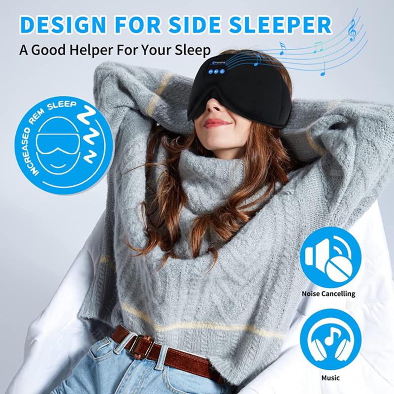 This Wireless Bluetooth Eye Mask Headset uses Bluetooth 5.0 which brings you good quality stereo with excellent sound quality and fast pairing connection. Rechargable.The extraordinary clear audio of this eye mask and the built in headphones provide you with an excellent and comfortable sound. It can block surrounding noise without using earplugs. This eye mask also has a larger and deeper eye space than traditional eye masks, so it doesn't put pressure on your eyes and helps relieve facial pressure to make sure you have a good night’s sleep.The Wireless Bluetooth Eye Mask Headset is equipped with a built-in upgraded and powerful battery. The mask needs about 2 hours of charging, and the talk time/music playing time can reach 6 hours and can be used for naps, insomnia, travel, shift work, yoga, relaxation, audiobooks, meditation, etc.*Specifications** *Material* – Fabric* *Bluetooth version* – 5.0* *Weight* – 132g* *Usage Time* – 5–6 hours* *Charging Time* – 2–3 hours* *Battery Information* – 200mAh* *Bluetooth distance* – 8–10 meters
