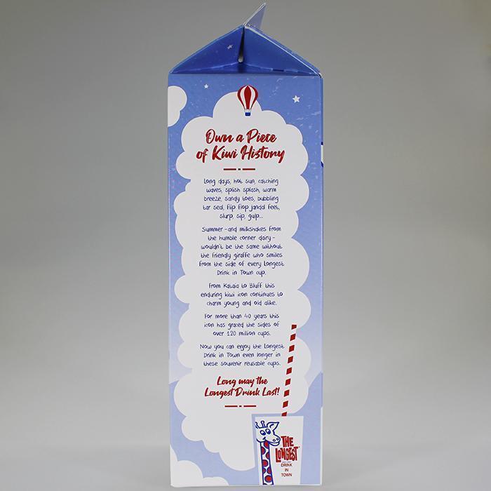 Kiwis have been sipping their corner diary milkshakes from paper versions of these cups since 1968 – our plastic ones are the same size, but made of tough plastic so you can enjoy your Longest Drink In Town for longer!Friends and family will love this iconic cup set. Perfect for that housewarming, birthday or Christmas gift or for those just passionate about all things Kiwi!The set includes four tough plastic milkshake cups in a souvenir milk carton.Dimensions – 17.5cm h x 9.5cm w*Features:** Set of 4* BPA Free* Made in New Zealand