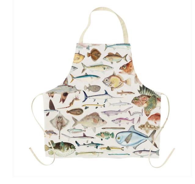 A great-looking apron featuring a selection of fishes found in New Zealand waters. Part of the cool Fishes of New Zealand range. This apron is a generous size and is perfect for chefs.*_Features_** Wash separately with similar colours* 100% cotton* Size: Length: 60cm Width x 70cm