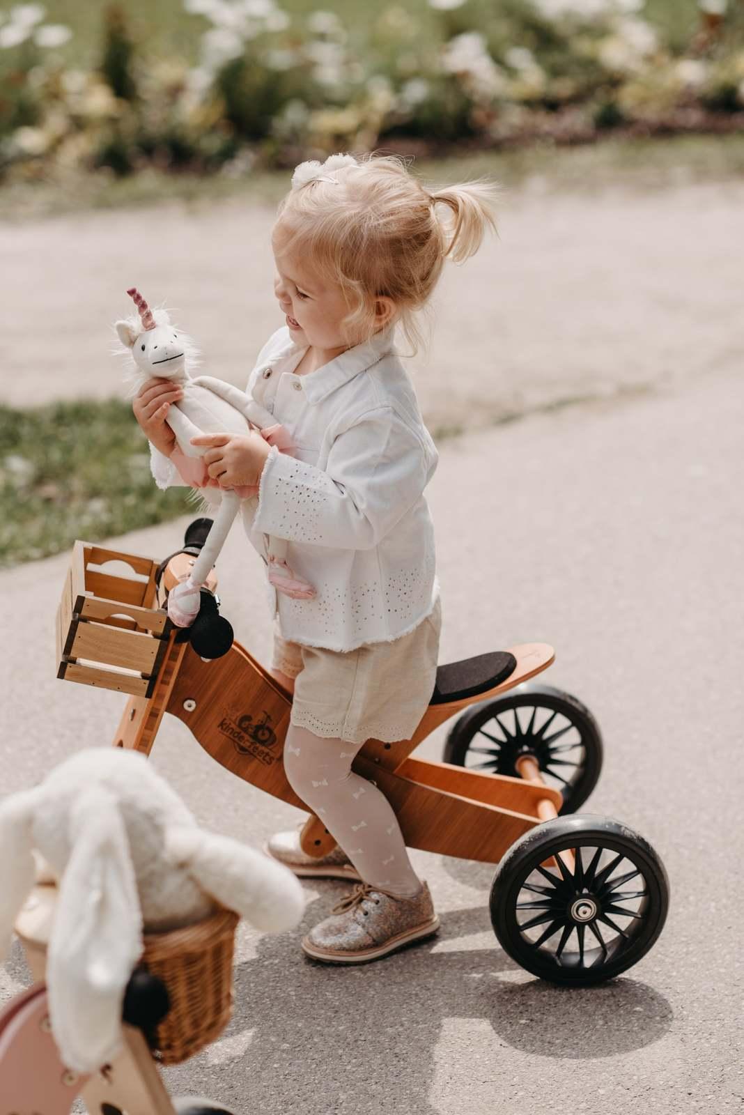 *Kinderfeets: Tiny Tot Plus – 2-in-1 Bike*The Kinderfeets Tiny Tot PLUS is a larger version of the popular Tiny Tot, our 2-in-1 bike that easily converts from a tricycle to a 2-wheel balance bike. Designed for ages 18 months to 4 years. Kinderfeets Tiny Tot PLUS lets tots start young with a tricycle and then, when they’re ready, it transforms into a balance bike using the supplied conversion axle. Seat height: 10” to 13 (25 to 34 cm).Handmade with wood from fast-growing birch trees —a replenishable resource, AND we plant trees with Trees for the Future! Suitable for children age 18 months and up Weight limit 55 lbs. (25 kg) (Please Note: basket and other bike accessories are sold separate)*Features:** The patented Kinderfeets Tiny Tot is a 2-in-1 bike* Easily converts from a tricycle to a 2-wheel balance bike!* When kids are ready the tricycle easily converts into a 2-wheel balance bike.* It's the smallest 2-in-1 balance bike on the market!* Seat Height measures 10” to 13 (25 to 34 cm).* Weight limit 55 lbs. (25 kg)*Suitable for ages 18m & up*
