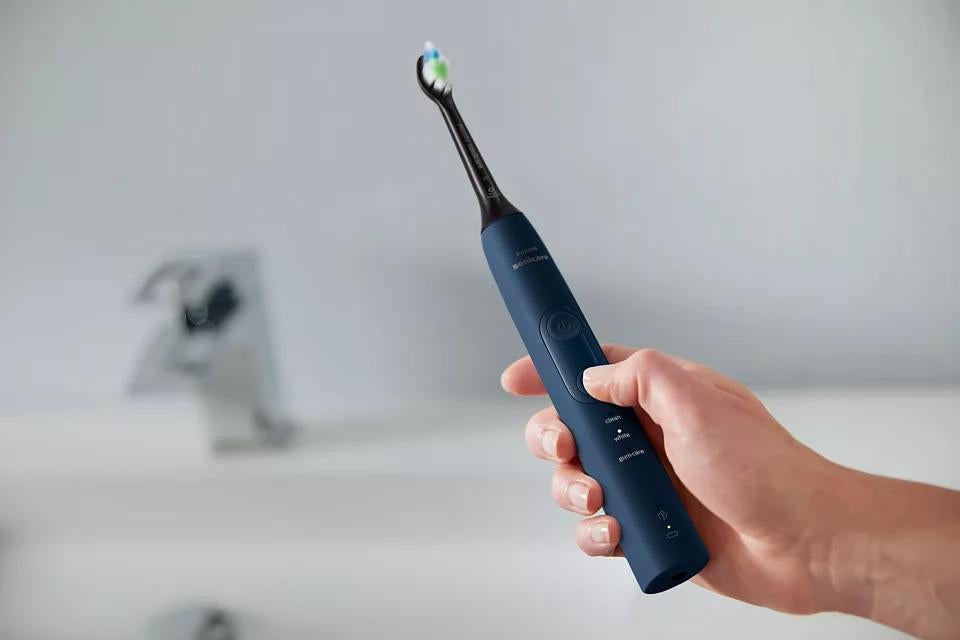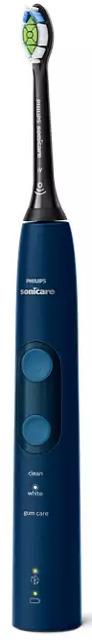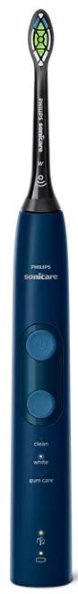 *_Philips: Sonicare Protectiveclean 5100 Whitening Electric Toothbrush_*Whiter teeth. Gently does it.Feel the difference of a gentle clean with our Pressure Sensor while whitening your teeth in 1 week.*Features:** Whitens teeth in just 1 week.* Built-in pressure sensor* 3 modes* 1 x BrushSync feature* Travel case*Choose from three modes*This toothbrush allows you to customize your brushing to your own needs, with a choice of three modes. Clean mode is standard for superior cleaning. White is the ideal mode for removing surface stains. And Gum Care mode adds an extra minute of reduced-power brushing, so you can gently massage your gums.*Philips Sonicare's advanced sonic technology*Philips Sonicare's advanced sonic technology pulses water between teeth, and its brush strokes break up plaque and sweep it away for an exceptional daily clean.*Lets you know if you’re pressing too hard*Brushing too hard can damage your teeth and gums. To prevent this, your Philips Sonicare ProtectiveClean emits a gentle pulsing sound to remind you to ease off on the pressure.*Encouragement to brush thoroughly*Need an electric toothbrush with a timer? Our QuadPacer lets you know when you've spent just the right amount of time cleaning each part of your mouth, while our Smartimer tells you when you've brushed for the recommended two minutes.*Safe & gentle on sensitive areas, orthodontics & dental work*You can be sure of a safe brushing experience: our sonic technology is suitable for use with braces, fillings, crowns, and veneers, and helps prevent cavities and improve gum health.*Always know when to replace your brush heads*All brush heads wear out over time. But our BrushSync technology tracks how long you've been using your brush head for, and how hard you've been brushing. When it's time to replace it, a light on your handle and a short beep will let you know. That way, you can be sure your brush head is doing a good job.*Connects smart brush handle and smart brush heads*A microchip-enabled technology that detects and synchronizes the smart brush head with the smart handle. The smart handle and smart brush head pair is a powerful combination that enables Smart replacement reminders.*Whitens teeth in just one week*Click on the W2 Optimal White brush head to remove surface stains and reveal a whiter smile. With its densely packed central stainremoval bristles, it's clinically proven to whiten teeth in just one week.*Makes traveling easier for you*Our premium travel case lets you store your toothbrush hygienically, while our compact charging base keeps you topped up when you’re on the go. You do get two weeks of regular use from a single full charge, but the charger's just the ticket for longer trips.*Technical Specifications** *Power:* * *Voltage:* 110–220 V* *Technical specifications:* * *Battery:* Rechargeable * *Operating time (full to empty):* 14 days * *Battery type:* Lithium ION* *Design and finishing:* * *Colour:* Navy Blue* *Service:* * *Warranty:* 2-year limited warranty* *Ease of use:* * *Battery indicator:* Light shows battery status * *Handle:* Slim ergonomic design * *Brush head system:* Easy click-on brush heads * *Brushing time:* Up to 2 weeks* *Items included:* * *Handle:* 1 ProtectiveClean * *Charger:* 1 * *Brush head:* 2 W2 Optimal White standard* *Cleaning performance:* * *Health benefits:* Helps reduce cavities * *Speed:* Up to 62000 brush movement/min * *Performance:* Whitens teeth in 1 week * *Timer:* Quadpacer and SmarTimer * *Pressure feedback:* Vibrates handle to alert user* *Modes:* * *Clean:* For exceptional everyday clean * *White:* Removes surface stains * *Gum Care:* Gently massages gums* *Smart sensor technology:* * *BrushSync Replacement Reminder:* * Always know when to * Replace brush heads * *Pressure sensor:* * Alerts when brushing too hard